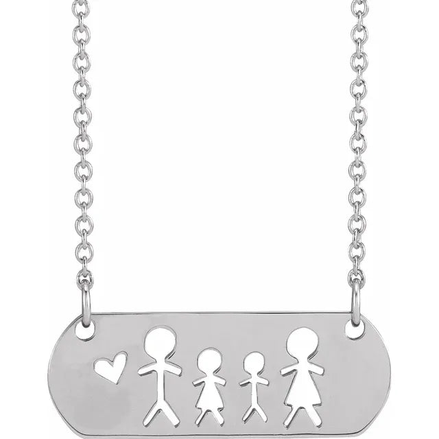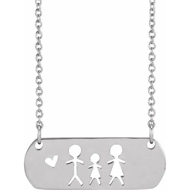 Celebrate the people who mean everything to you with our Family Bar Necklace, a timeless piece designed to honor love, connection, and family bonds. Each necklace features a sleek horizontal bar adorned with delicate family silhouettes and a small heart detail — a simple yet meaningful symbol of the ones you carry closest to your heart.